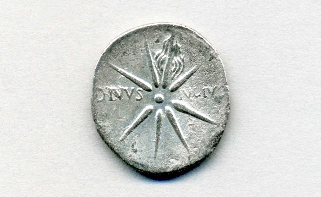 When a comet appeared in the skies over Rome in July 44 bc, during the funeral games for Julius Caesar, sponsored by Octavian, it was hailed by the people as the soul of Caesar ascending to the gods, solidifying his deification. From that moment forward, Gaius Octavius “insisted on the being known as Caesar Divi Filius—the Son of God.”[10]